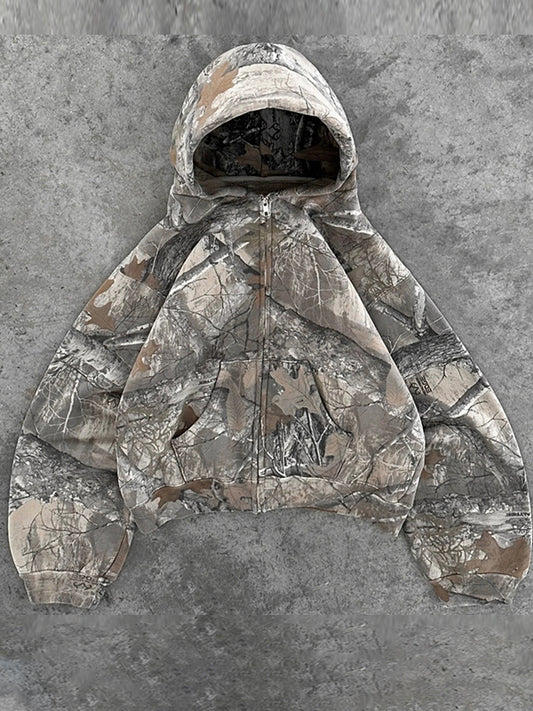 Black Vintage Skull Print Zip Up Oversized Hoodie