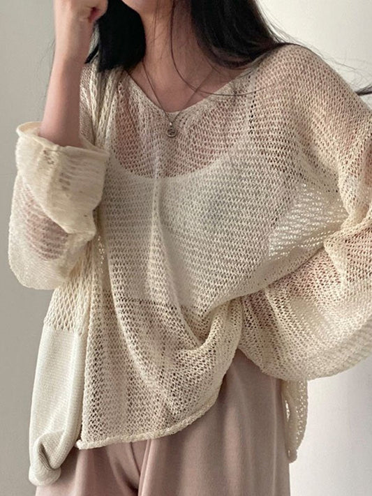 Haut oversize en maille crochetée à manches longues