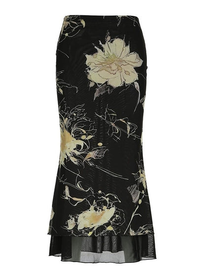 Beauté botanique : Ornée d'un délicat imprimé floral dans des tons doux et sourds, cette jupe longue apporte une touche de beauté naturelle à votre garde-robe, parfaite pour celles qui apprécient les motifs floraux intemporels.