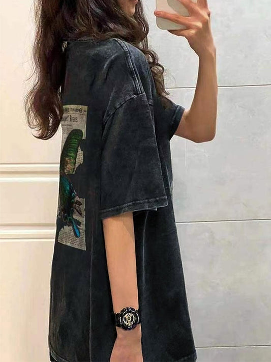 Vintage oversized T-shirt met vlinderprint en korte mouwen
