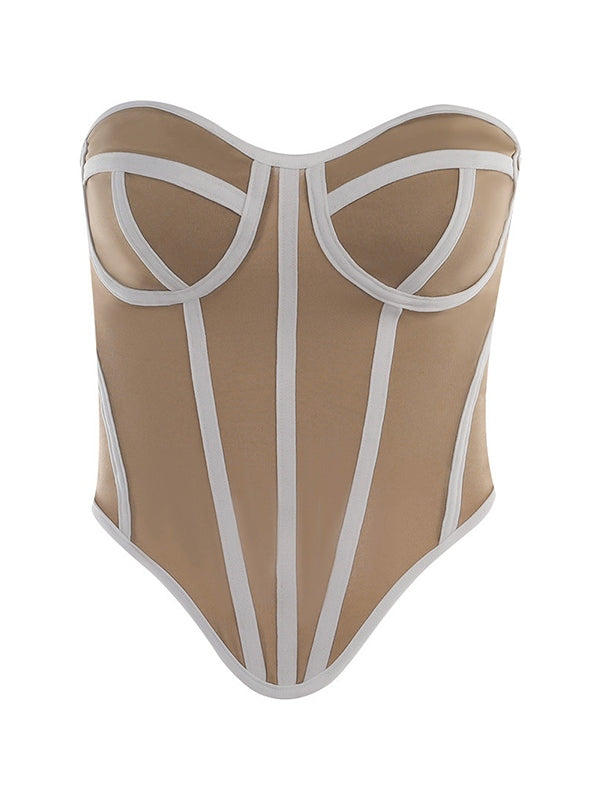 Contrast Color Y2k Line Irregular Hem Corset Top