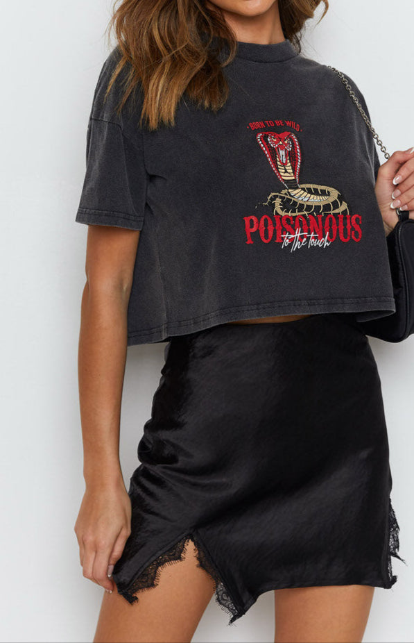 Introducing a sleek black mini skirt that effortlessly transitions from day to night with its chic lace-detailed splits. The satin-like fabric and figure-flattering silhouette add a touch of sophistication to any outfit, making it a versatile staple in your wardrobe.